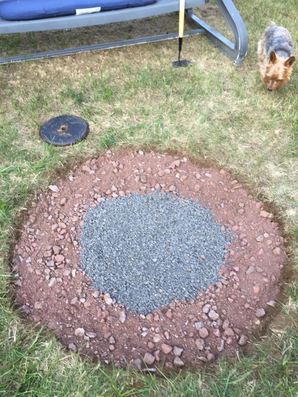 For placement I decided a distance no closer than 15 feet to the house, close to a water source and away from any trees that would have the potential of catching fire. I also didn’t want it too close to the table in the patio because no one wants to eat next to a rippin and roaring fire that kicks out tons of smoke and heat.