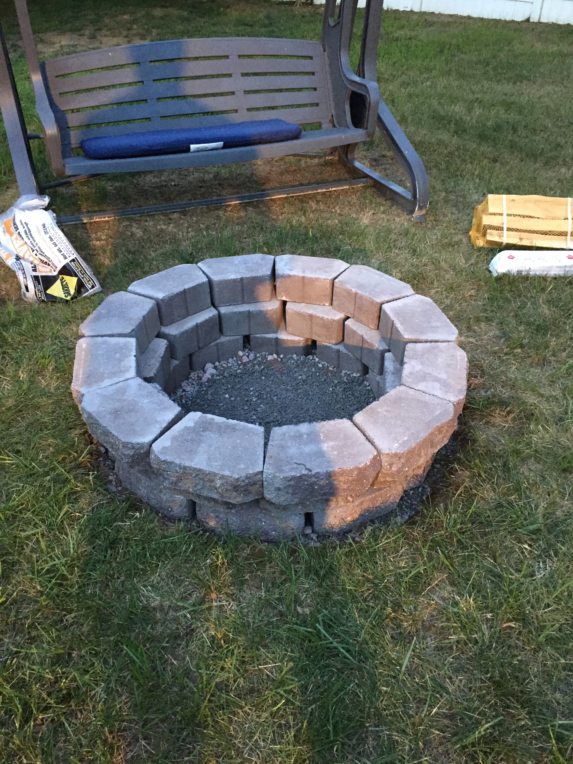 Now it’s time for the shape and size. Right at the store I placed the stones and began shaping out my desires size. Started with a 10 stone circumference then went larger then added additional layers. Are one point I had it four layers deep and thought to myself, it looks great but how are you going to see in when you are sitting plus it looks kinda like a Well. So we kept it to 3 blocks in height.